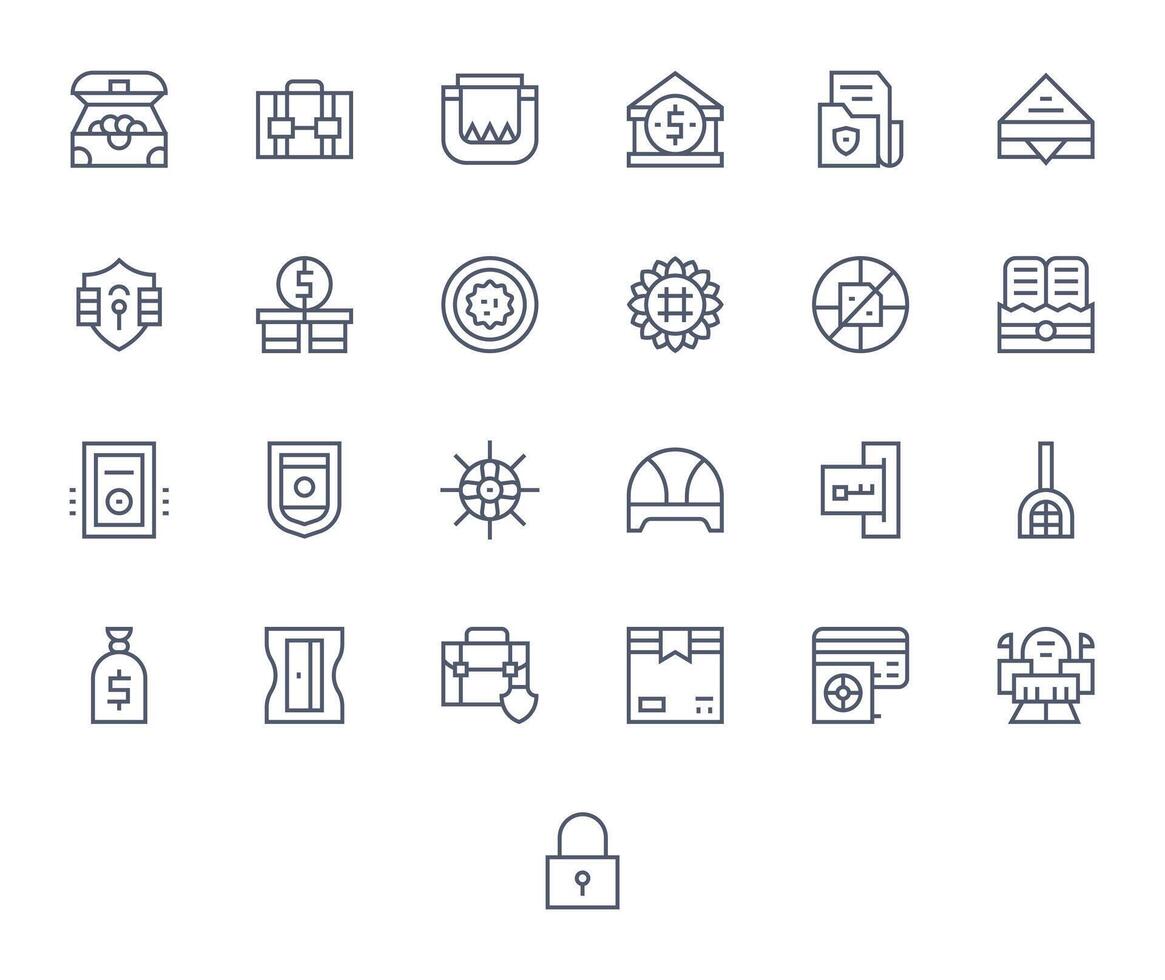 Vault Scalable Set featuring 25 Editable Regular Line High Resolution Icons vector