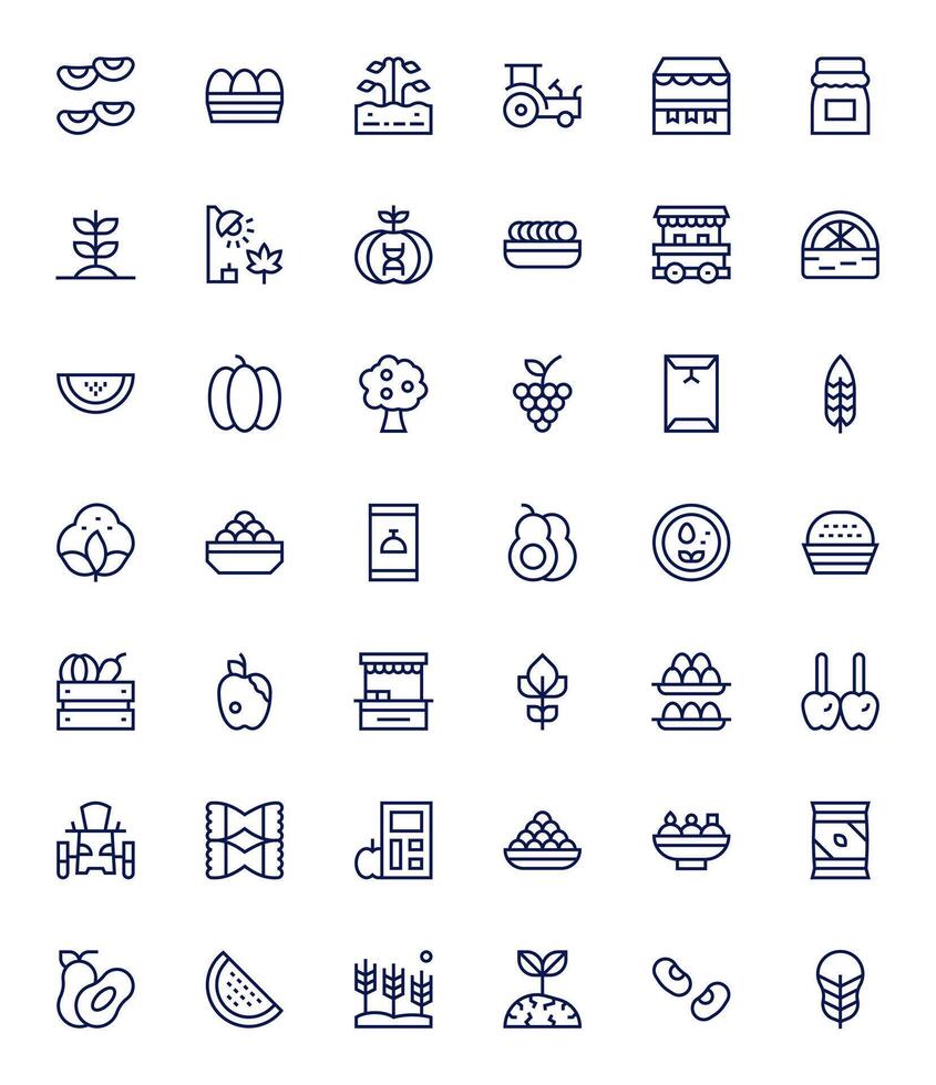 42 Regular Line Icons from Produce in 128x128 Pixel Optimized Quality Free Vector