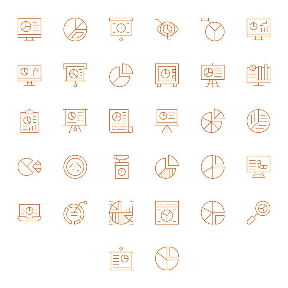 32 Thin Line Pixel Aligned Icons for Pie Chart Graphics vector