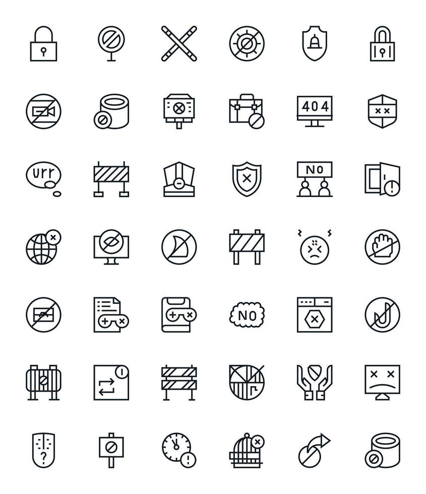 42 Regular Line Pixel Aligned Icons for Access Denied Graphics Free Vector