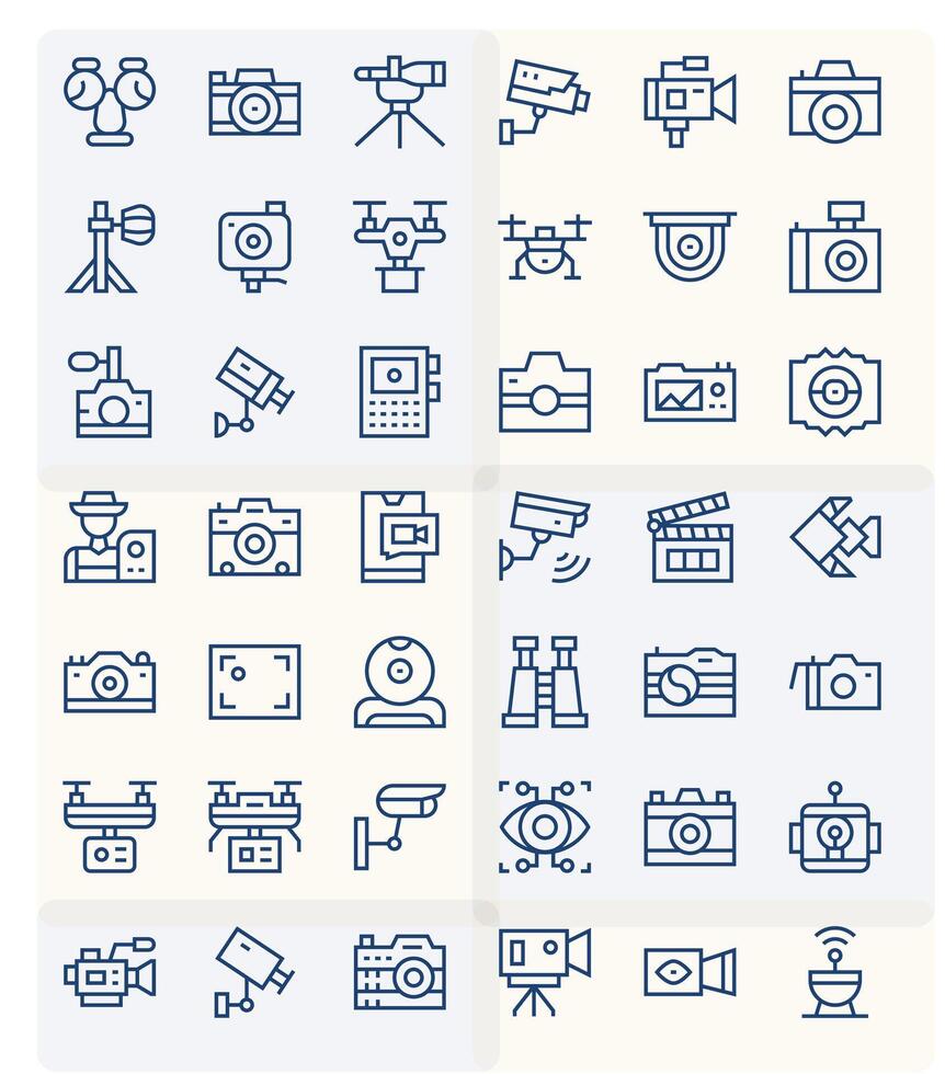 Camera Comprehensive Bundle with 42 Grid Fitted Regular Line 128x128 Icons vector