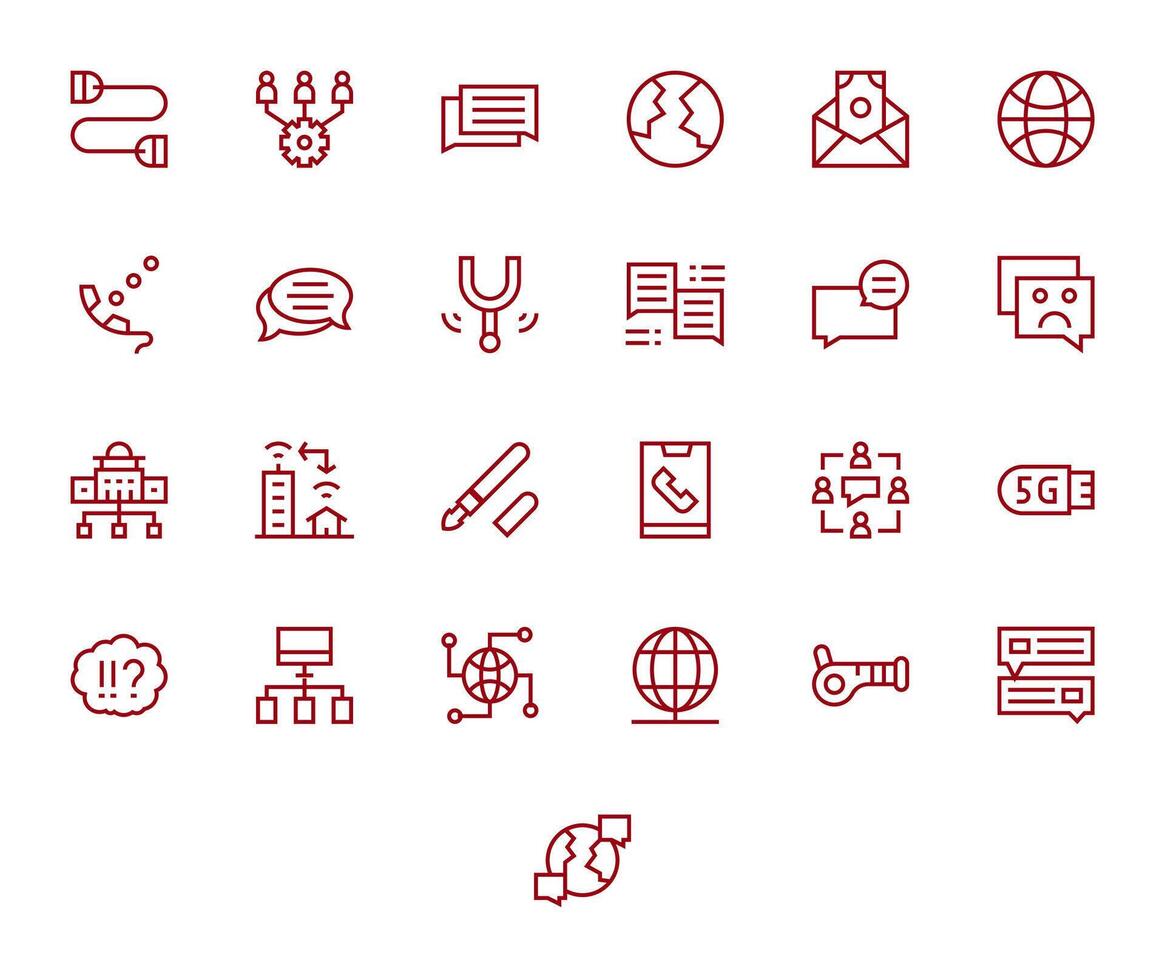 Communication Complete Package with 25 128x128 Regular Line Pixel Optimized Icons vector