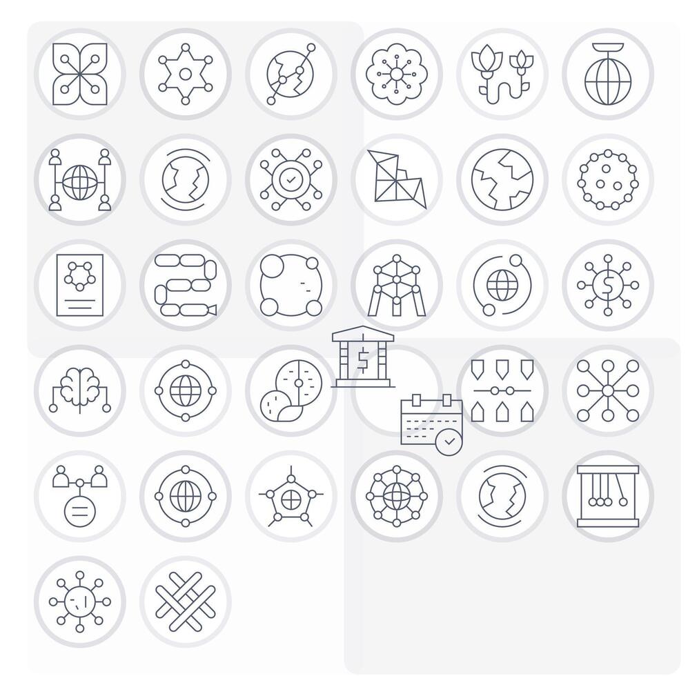32 Thin Line Icons for Interconnected in crisp 256x256 PIXEL Perfect resolution vector