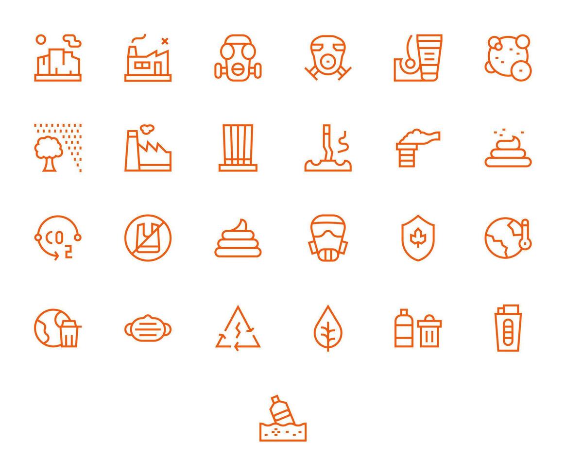 Pollution Icon Library with 25 Regular Line High Resolution Detail Enhanced Designs vector