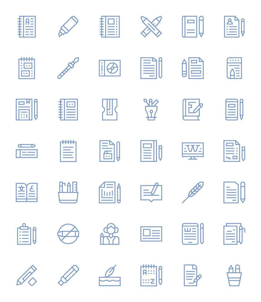 Writing 64x64 Icon Pack with 42 Regular Line Pixel Optimized Elements vector