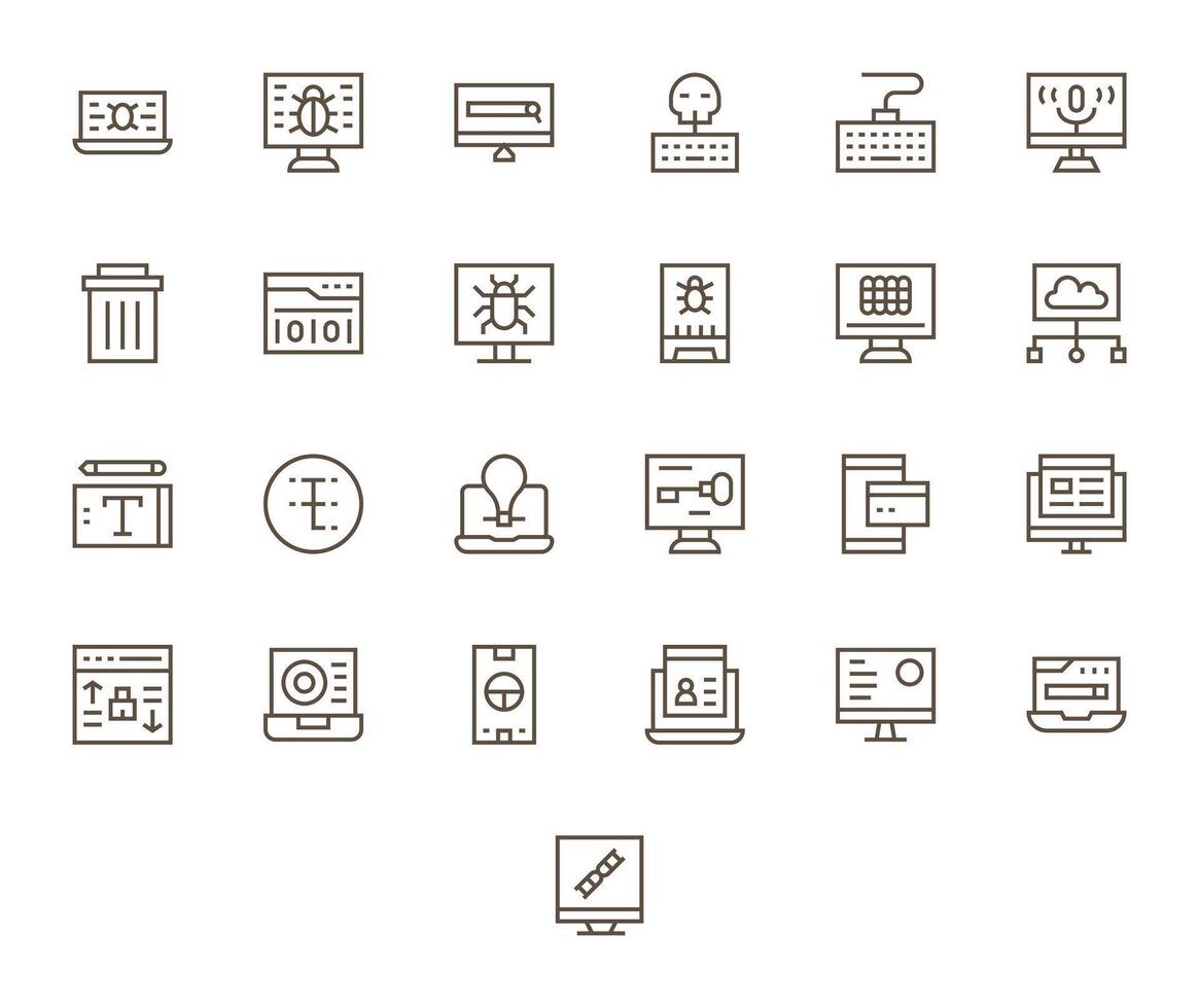 Computer featuring 25 256x256 Icons in Regular Line Design vector