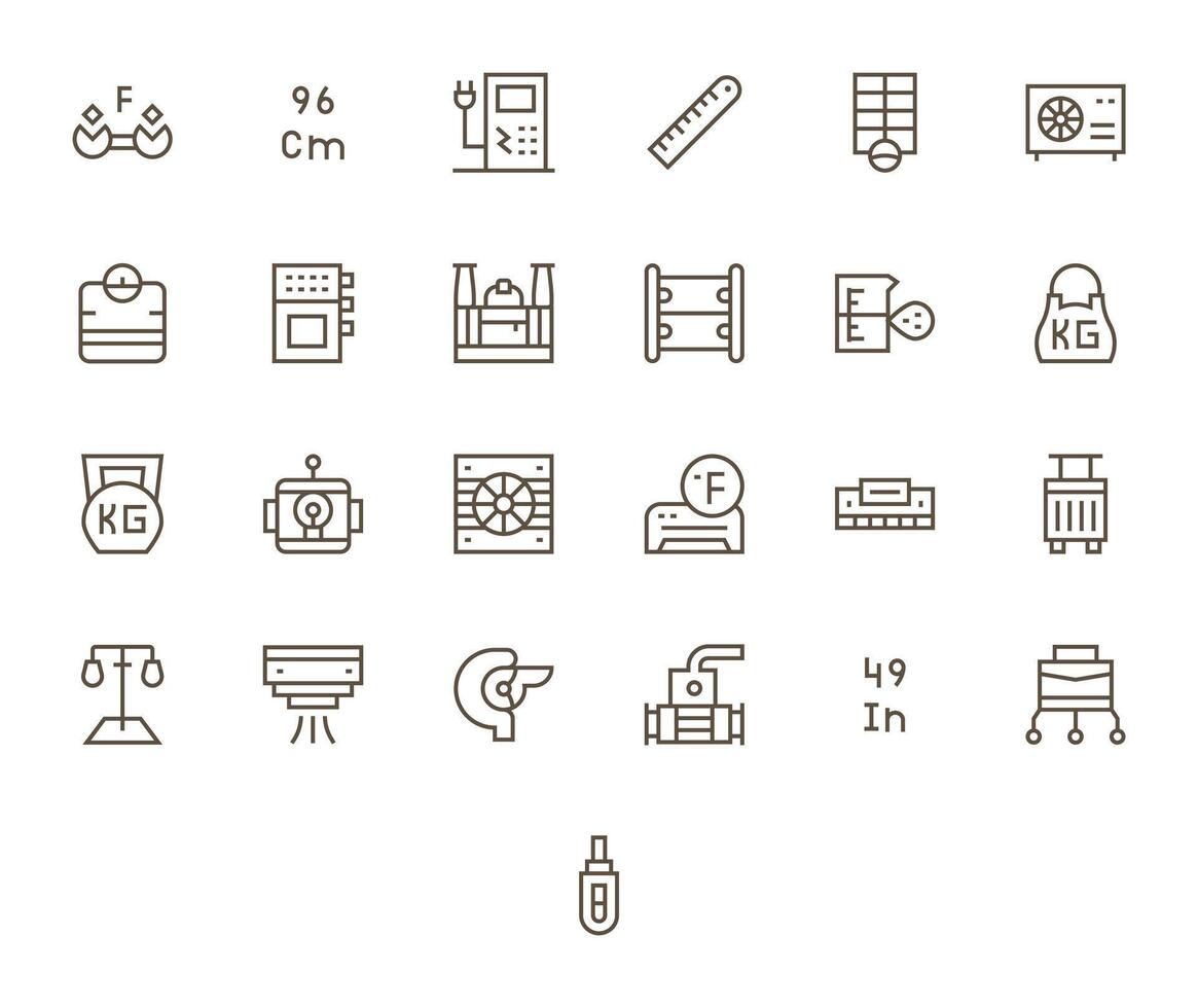 Unit Icon Repository containing 25 Regular Line High Resolution Grid Fitted graphics vector