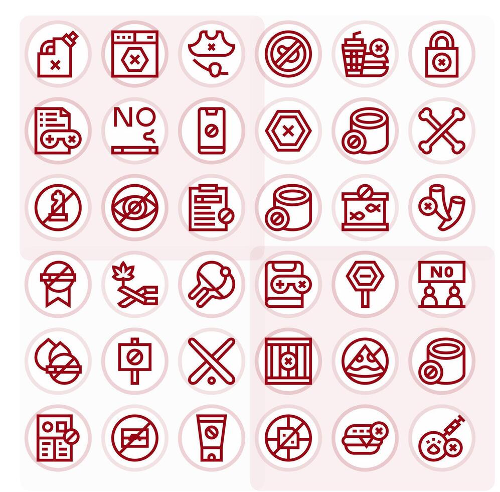 Not Allowed Design Icons featuring 36 Pixel Optimized Bold Line Style Free Vector