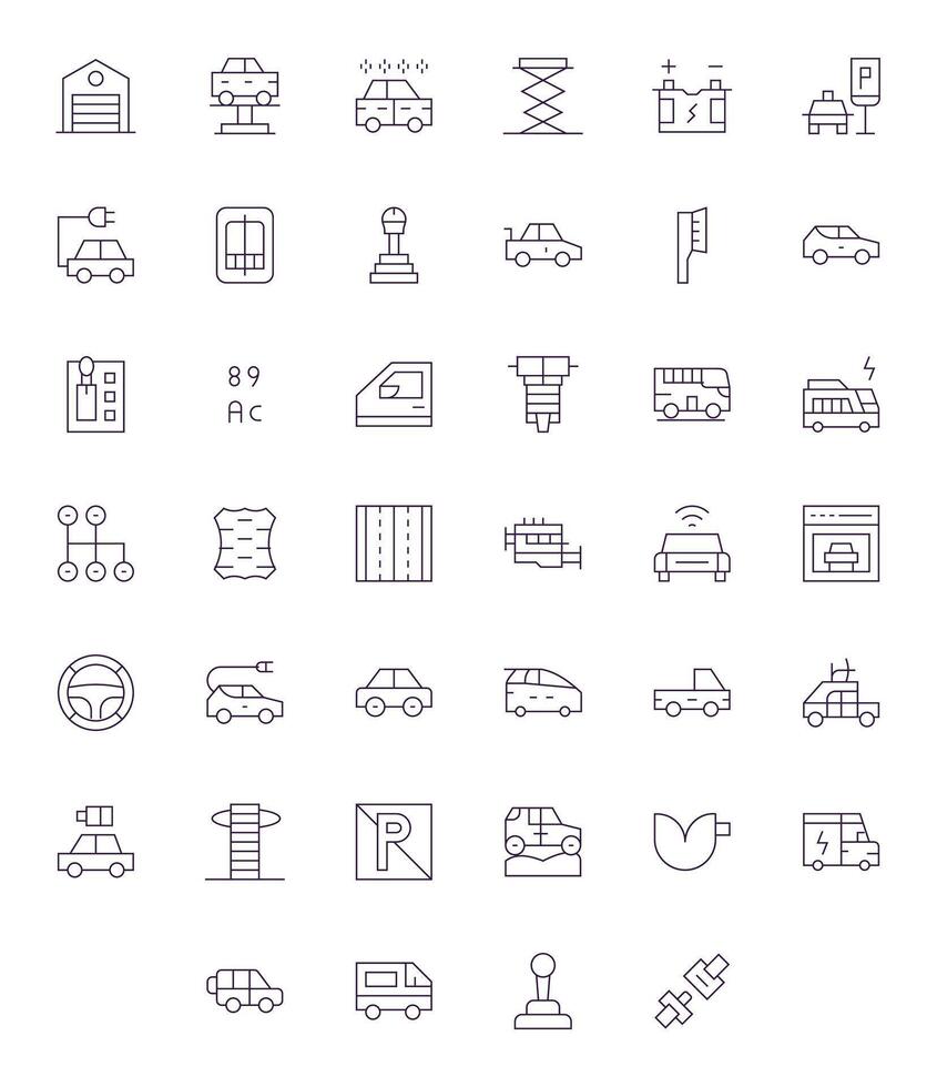 40 High Resolution Icons for Automobile in Grid Fitted Thin Line Format Free Vector