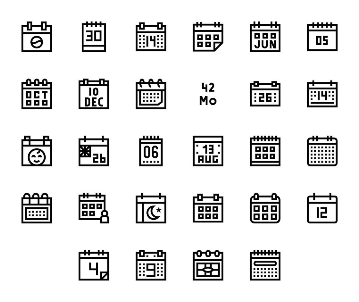 Month Icon Toolkit featuring 28 Display Perfect High Resolution Bold Line elements Free Vector