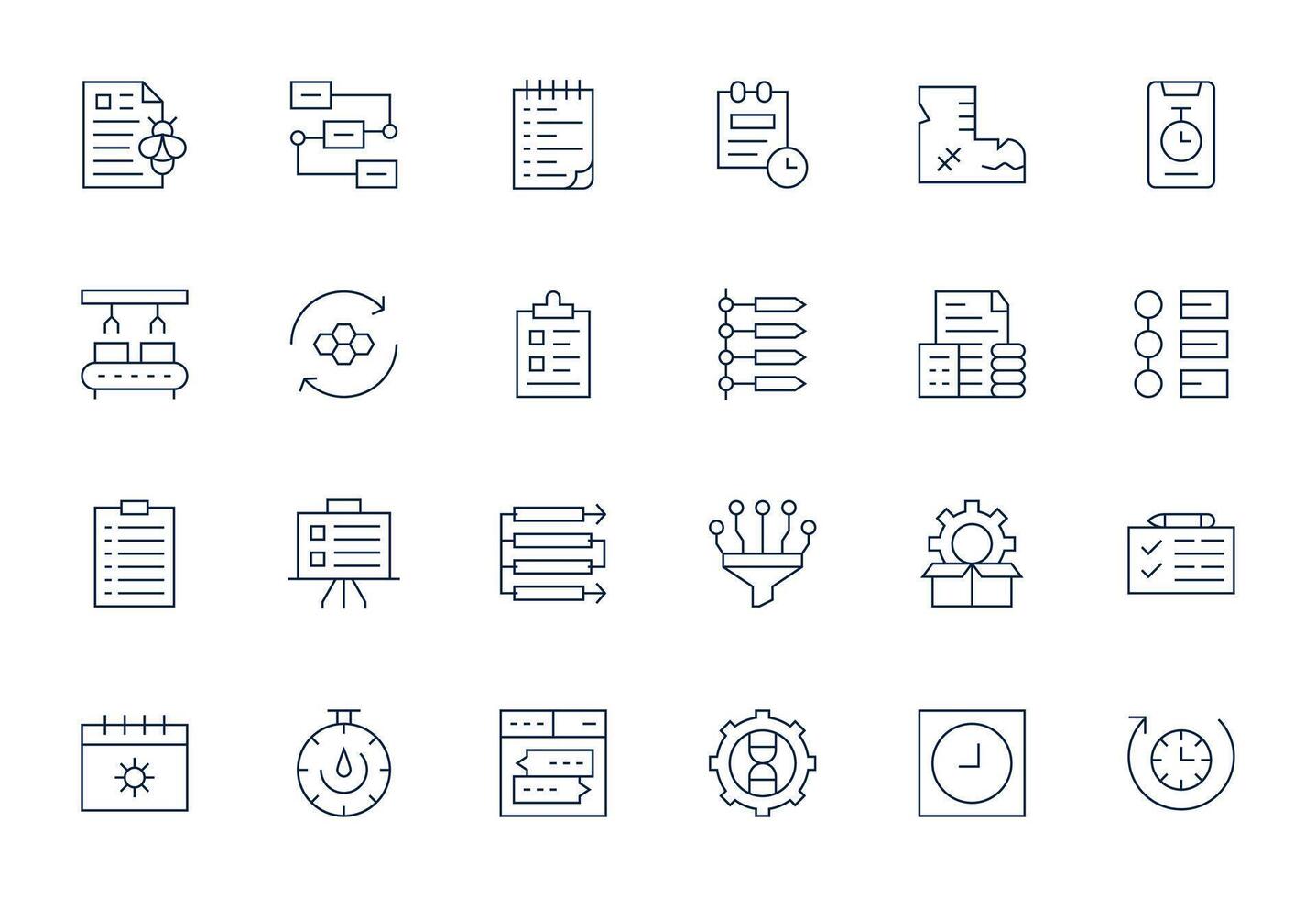 Thin Line Pixel Optimized Icons from Workflow Set with 24 128x128 Icons vector