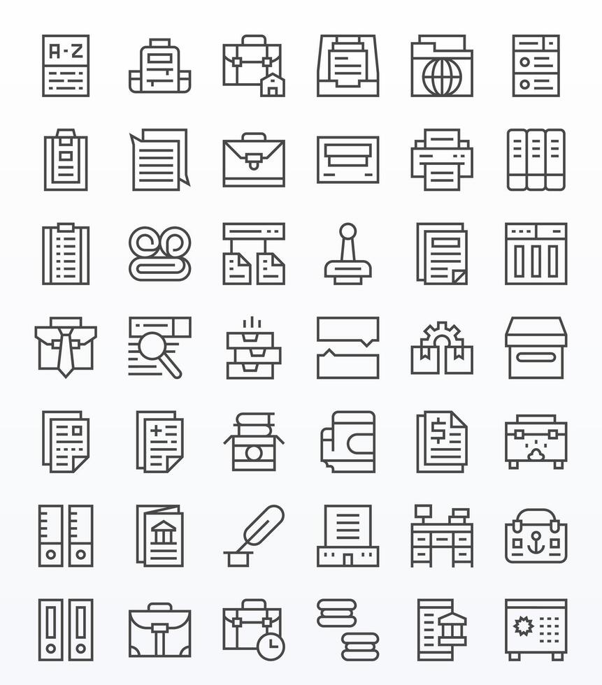 Documents Comprehensive Bundle with 42 Pixel Aligned Regular Line High Resolution Icons Free Vector