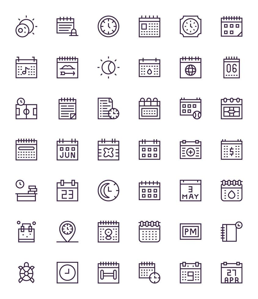 42 Regular Line Pixel Optimized Icons crafted for Calendar 64x64 applications vector