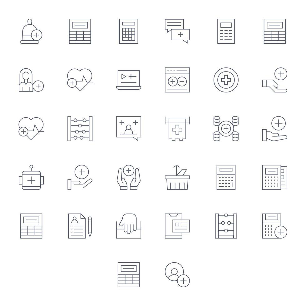 Add Comprehensive Bundle with 32 Grid Fitted Thin Line 128x128 Icons Free Vector
