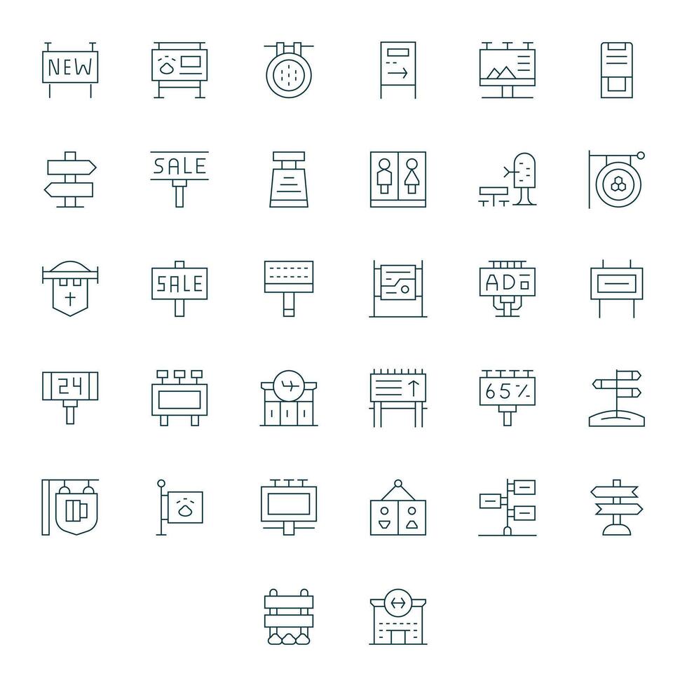 Signage Scalable Set featuring 32 Pixel Aligned Thin Line 128x128 Icons vector
