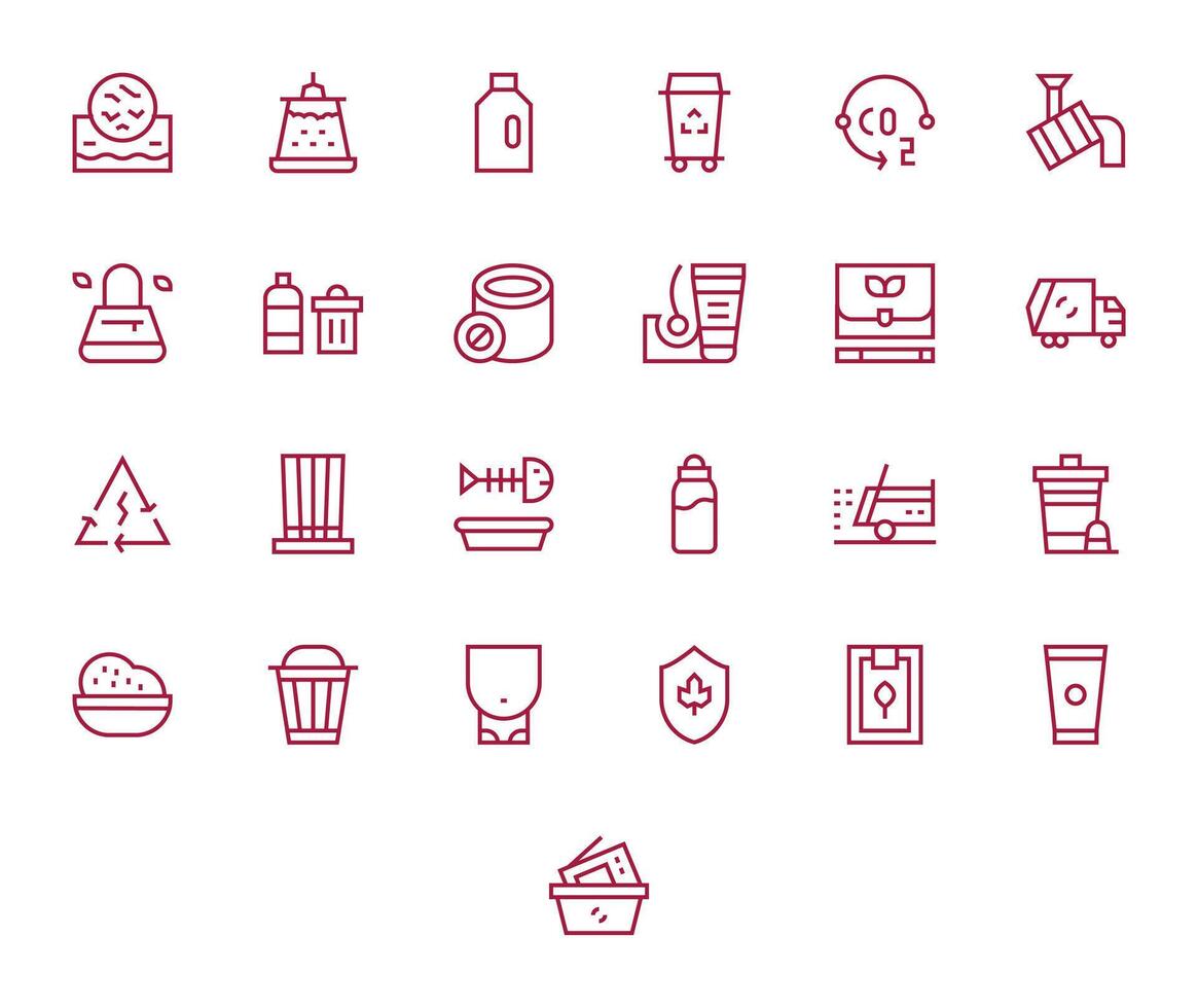 Recycling Complete Package with 25 High Resolution Regular Line Display Perfect Icons Free Vector