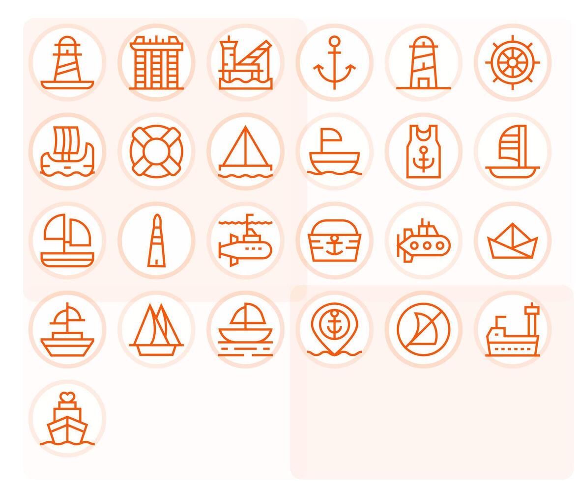 25 High Resolution Regular Line Icons optimized for Ship Editable display vector