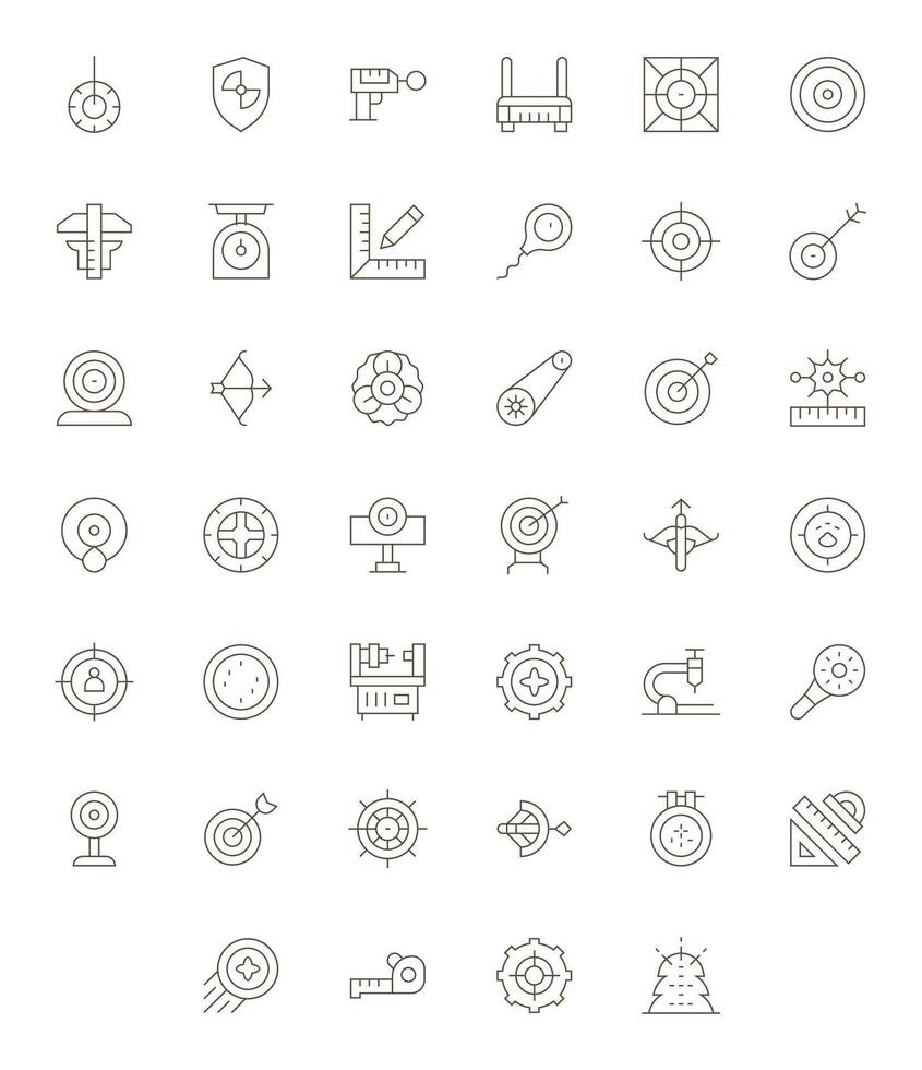 Precision Icon Library with 40 Thin Line 64x64 Pixel Optimized Designs Free Vector