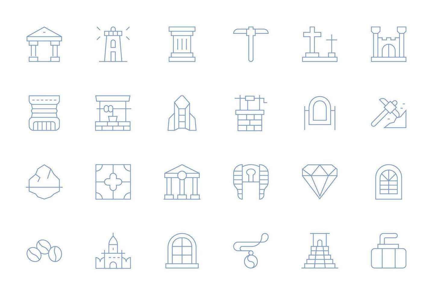 Stone Comprehensive Bundle with 24 Detail Enhanced Thin Line High Resolution Icons vector