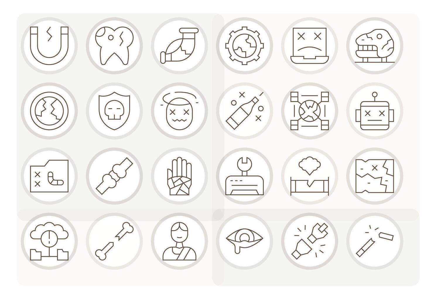 Broken Comprehensive Bundle with 24 Editable Thin Line Retina Ready Icons vector