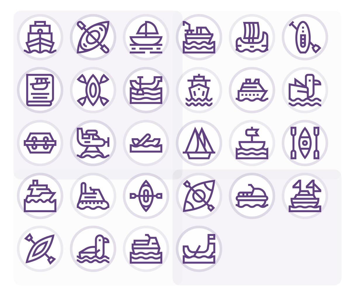 Watercraft Icon Toolkit featuring 28 Pixel Aligned High Resolution Bold Line elements vector