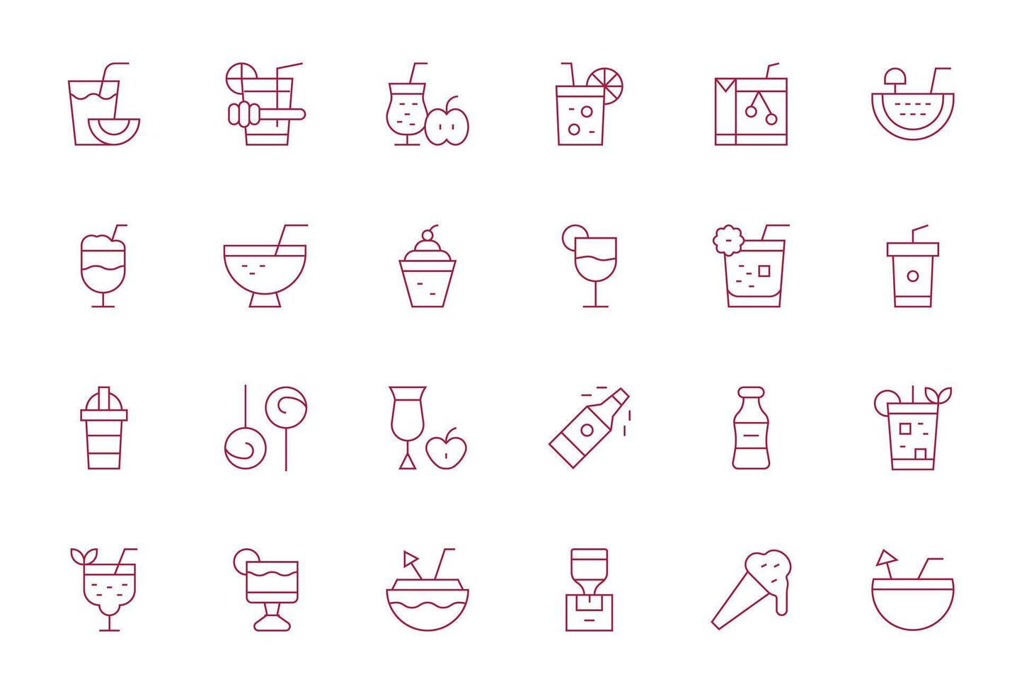 Refreshment Comprehensive Bundle with 24 Pixel Aligned Thin Line Retina Ready Icons vector