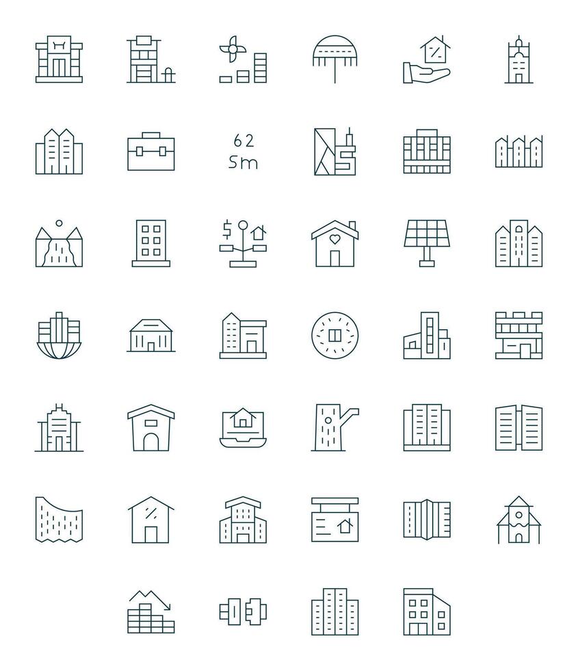 40 Pixel Aligned Thin Line Icons designed for Housing Interface Free Vector