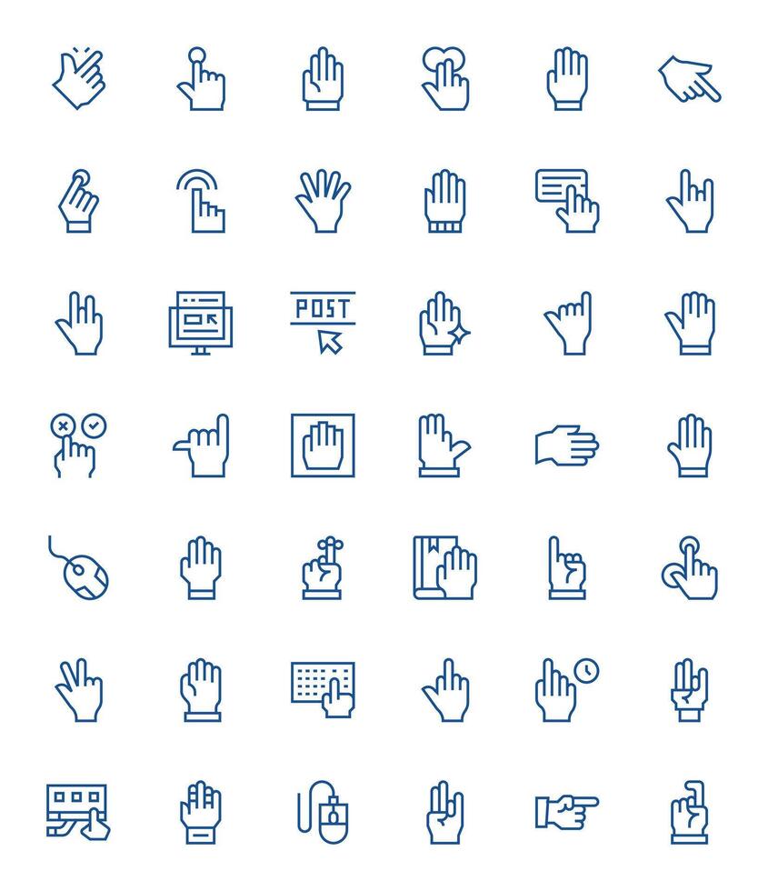 Regular Line Style Click Icons with 42 64x64 Editable Designs Free Vector