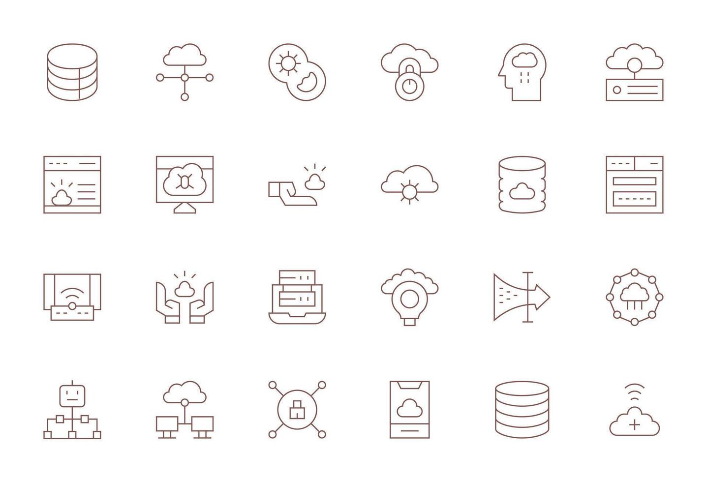 Cloud Computing Icon Library with 24 Thin Line 64x64 Pixel Optimized Designs vector
