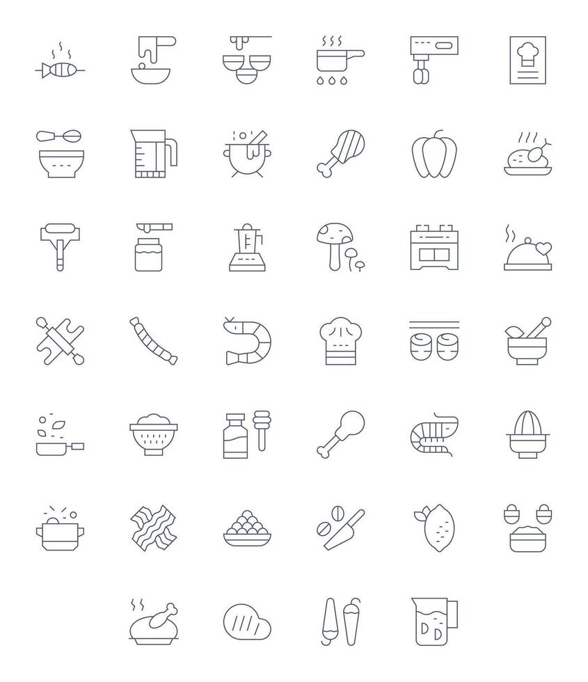Recipe Professional Set with 40 Thin Line Pixel Aligned High Resolution Icons Free Vector
