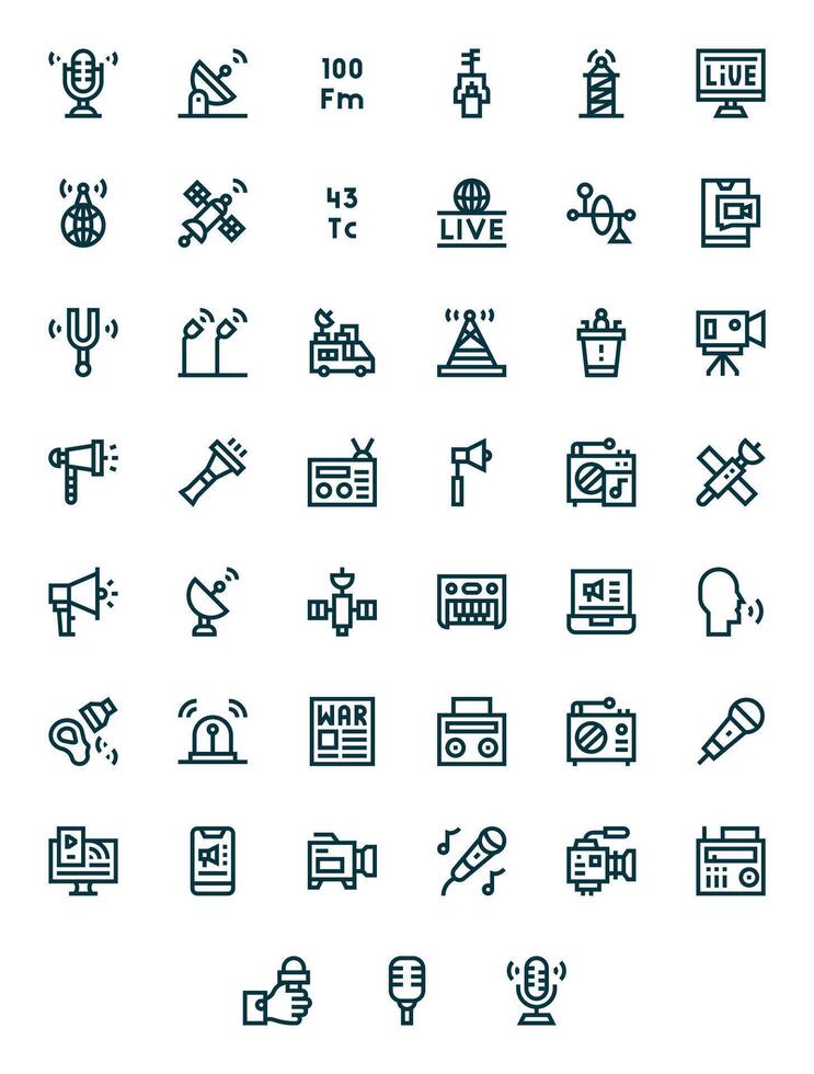 45 Pixel Optimized Bold Line Icons designed for Broadcast Interface Free Vector