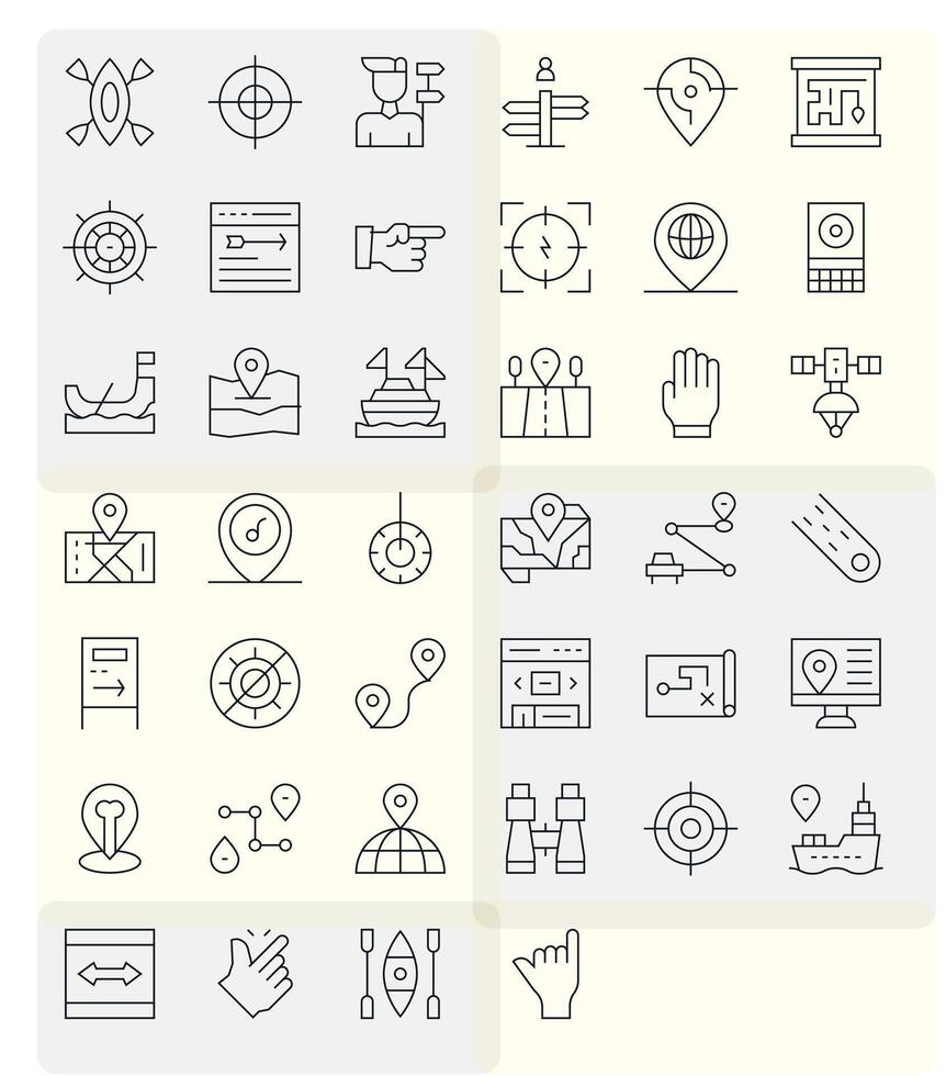 Navigation Icon Repository containing 40 Thin Line Retina Ready PIXEL Perfect graphics Free Vector