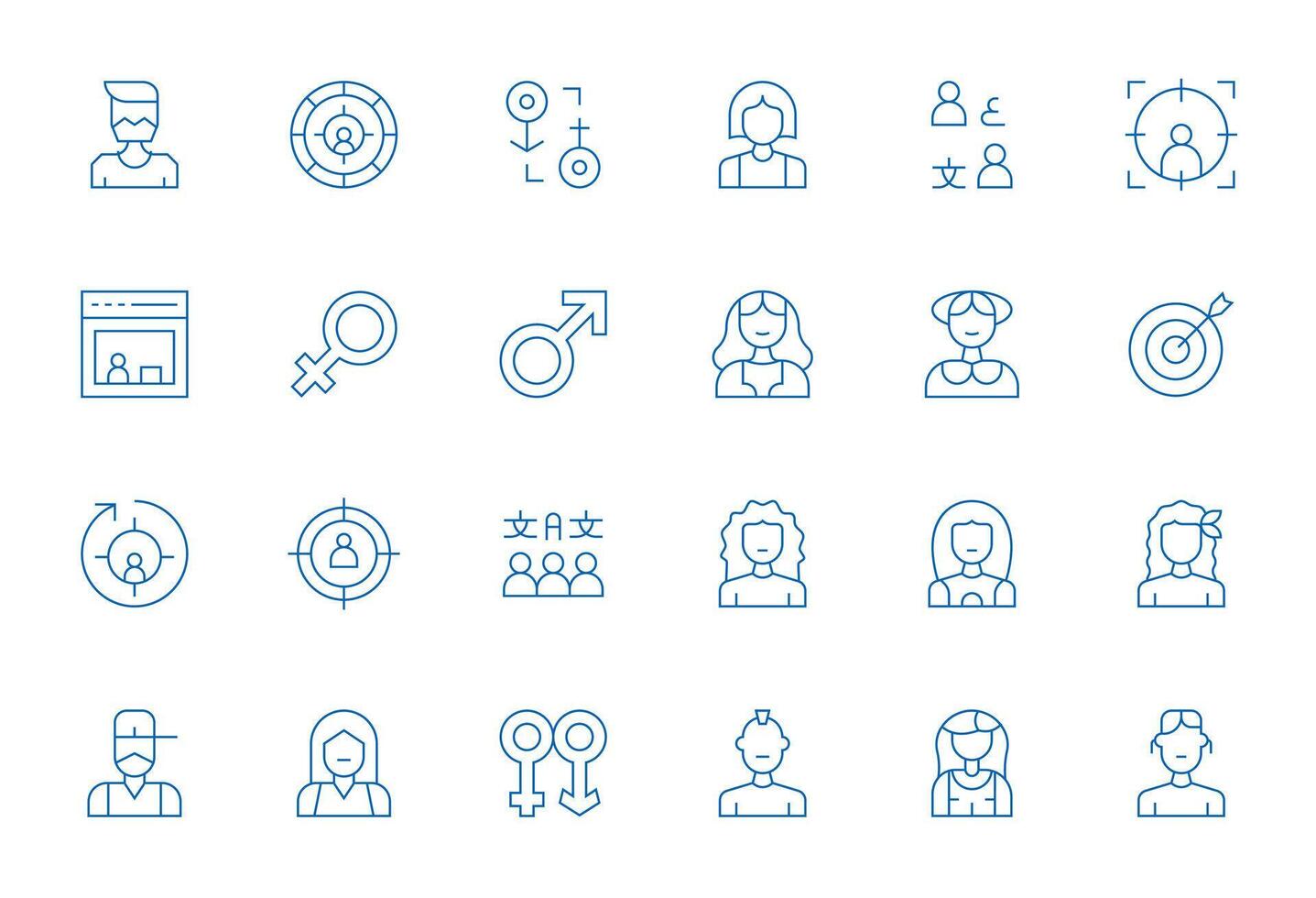 Demographic Scalable Set featuring 24 Editable Thin Line 256x256 Icons vector