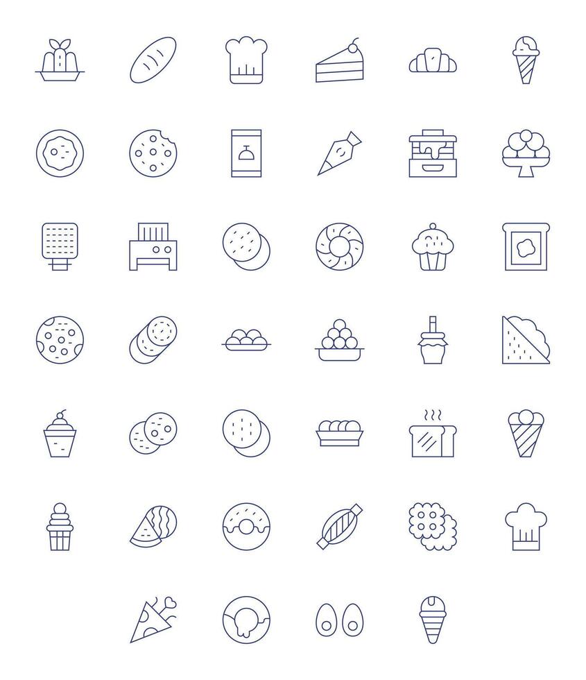 40 Thin Line Pixel Optimized Icons crafted for Bakery 64x64 applications vector