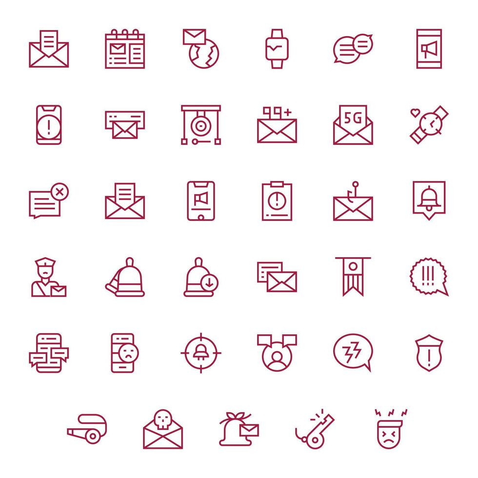 35 Icons for Notification optimized in Pixel Aligned 128x128 Regular Line resolution vector