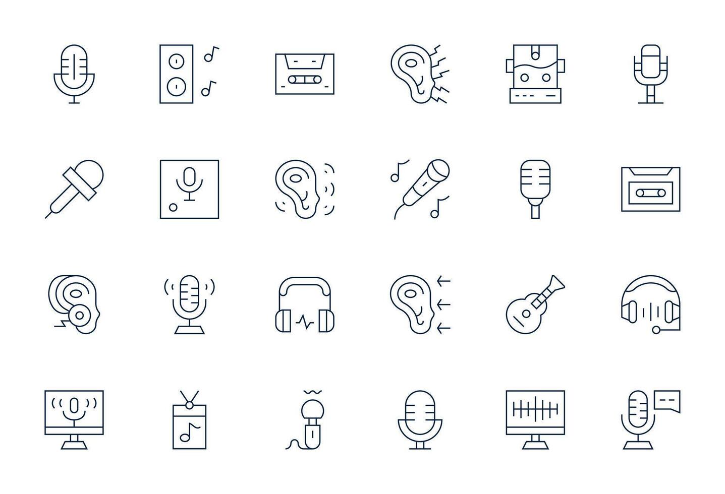 Sound Recording Comprehensive Bundle with 24 Editable Thin Line 128x128 Icons Free Vector