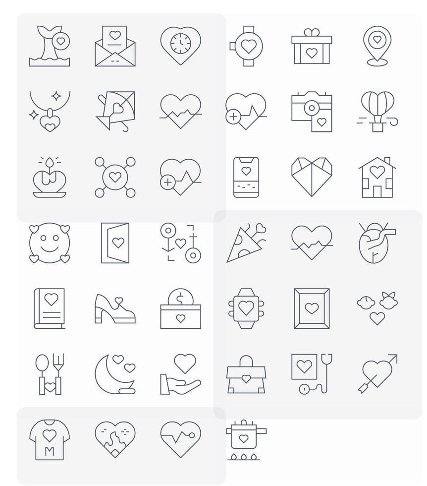 40 256x256 Thin Line Icons optimized for Heart Pixel Aligned display vector