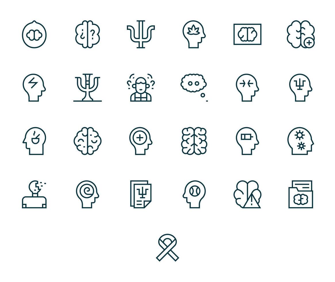 Mental Icon Repository containing 25 Regular Line 64x64 Pixel Aligned graphics vector