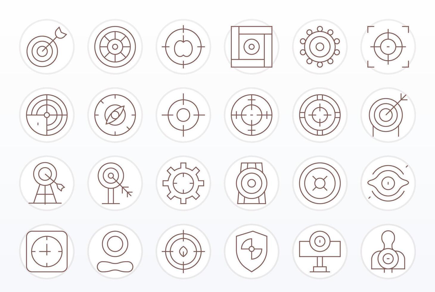 Thin Line Style Aim Icons with 24 256x256 Pixel Optimized Designs Free Vector