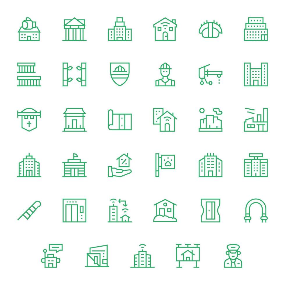 Building Comprehensive Bundle with 35 Pixel Optimized Regular Line 256x256 Icons Free Vector