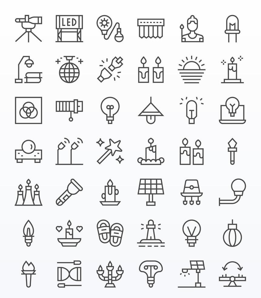 42 Icons for Light optimized in Pixel Optimized 256x256 Regular Line resolution Free Vector