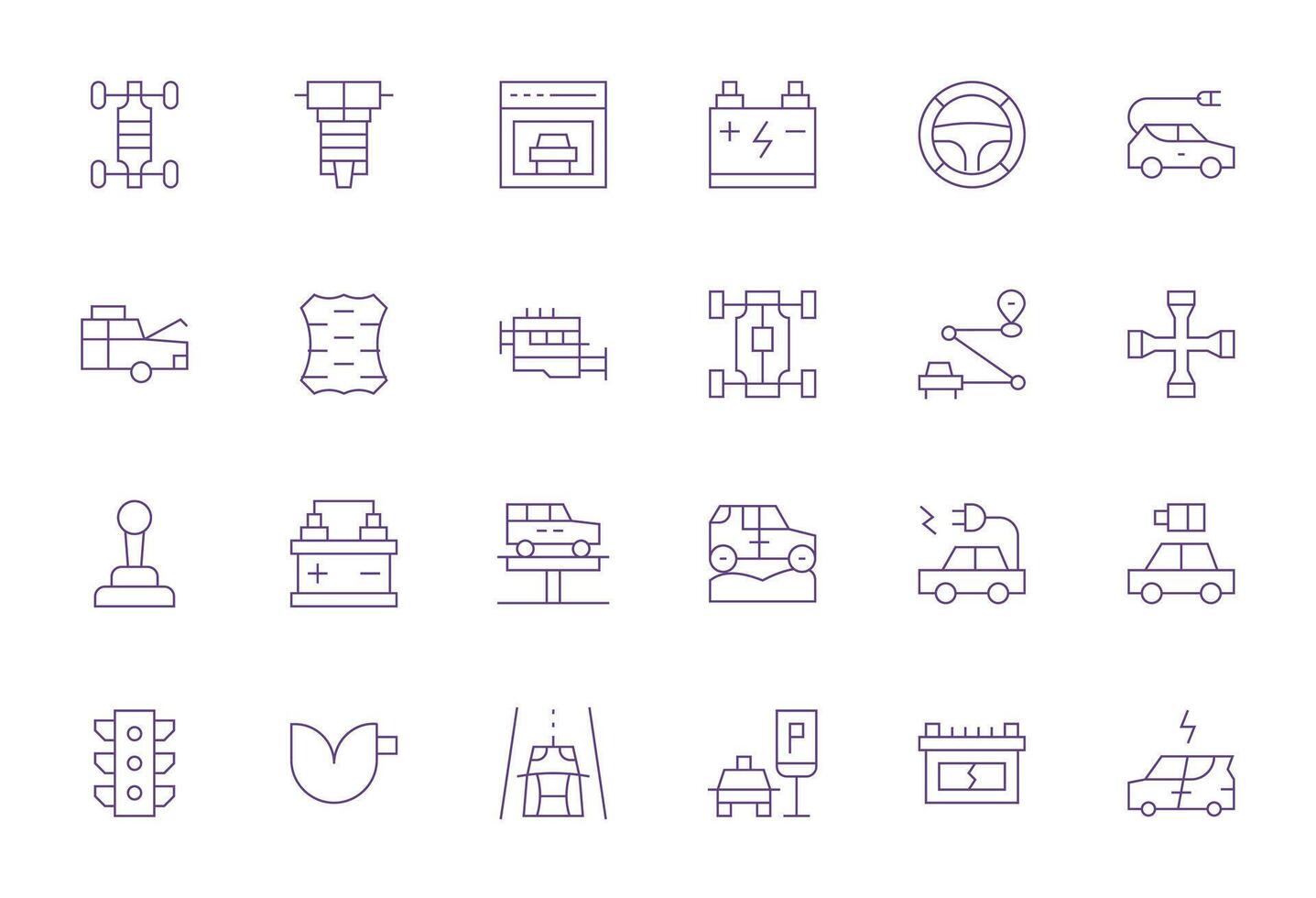 24 Thin Line Pixel Optimized Icons for Automobile Graphics vector