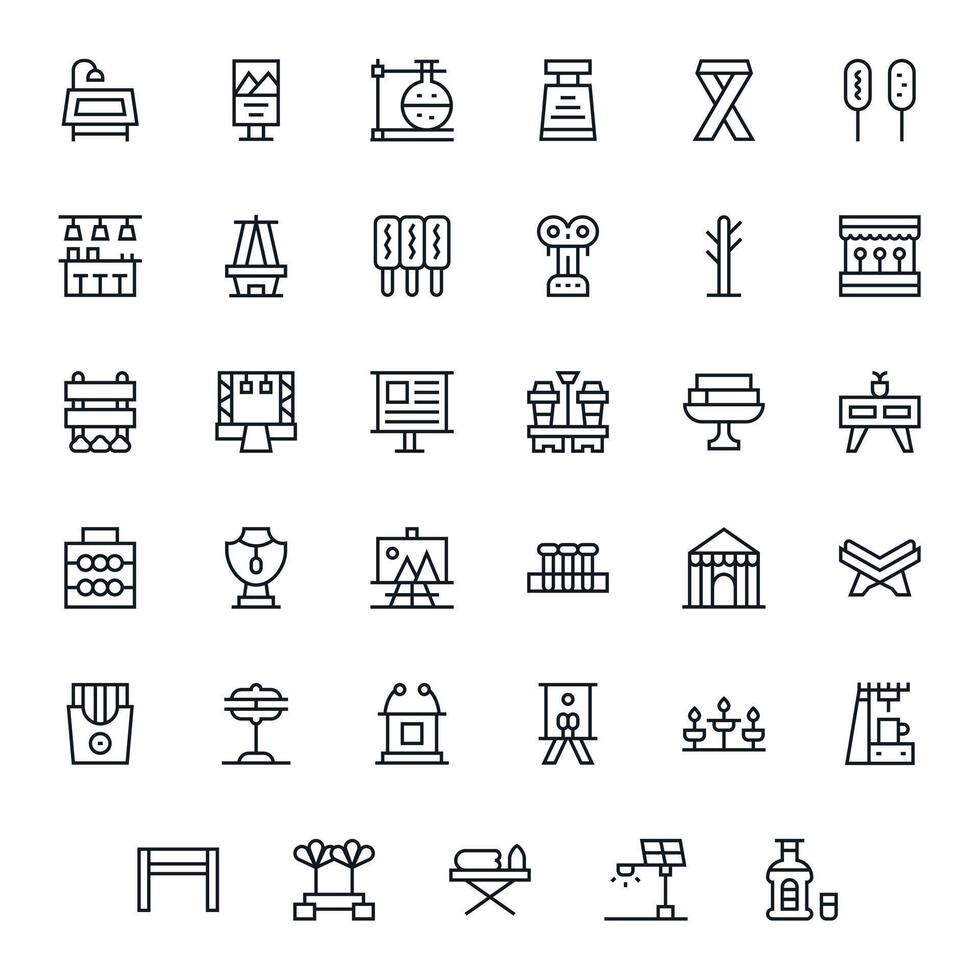 Regular Line Style Stand Icons with 35 High Resolution Pixel Aligned Designs Free Vector