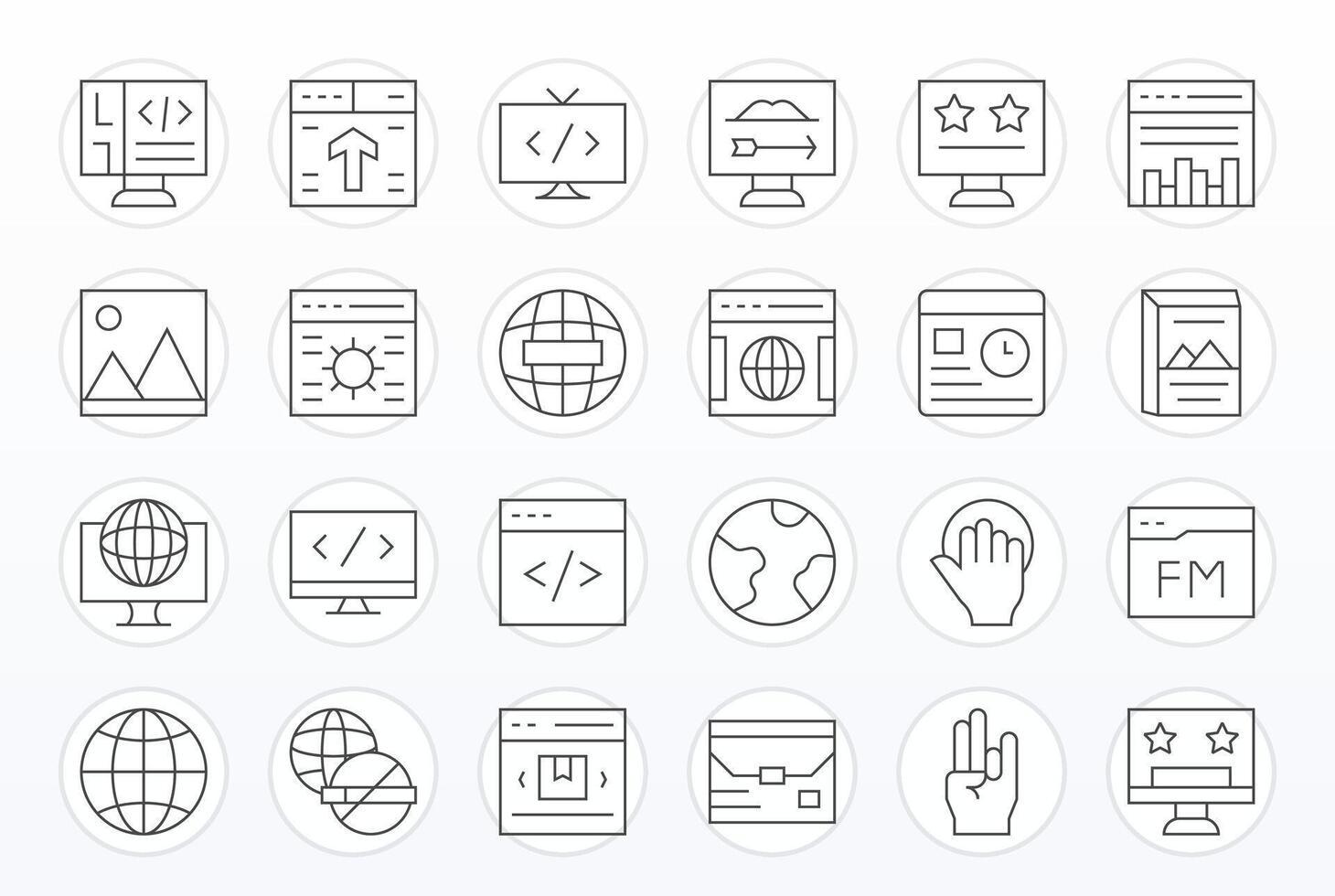 24 Grid Fitted Icons themed around Website in 256x256 Thin Line format Free Vector