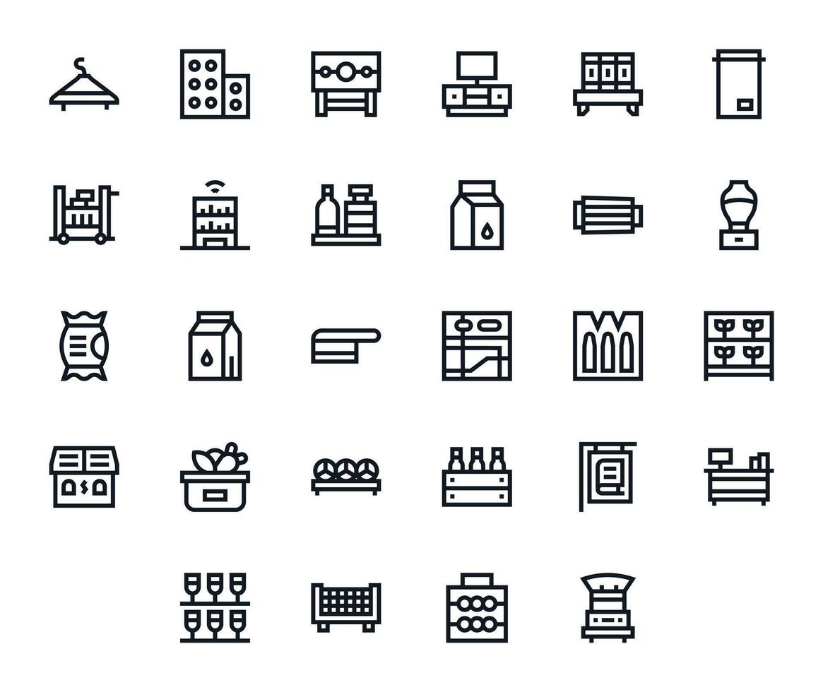 28 Icons for Shelf featuring High Resolution PIXEL Perfect Bold Line Graphics Free Vector