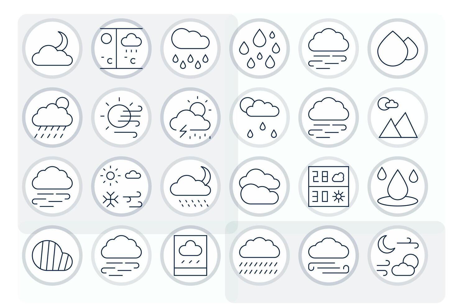 Cloudy Comprehensive Bundle with 24 PIXEL Perfect Thin Line 128x128 Icons vector
