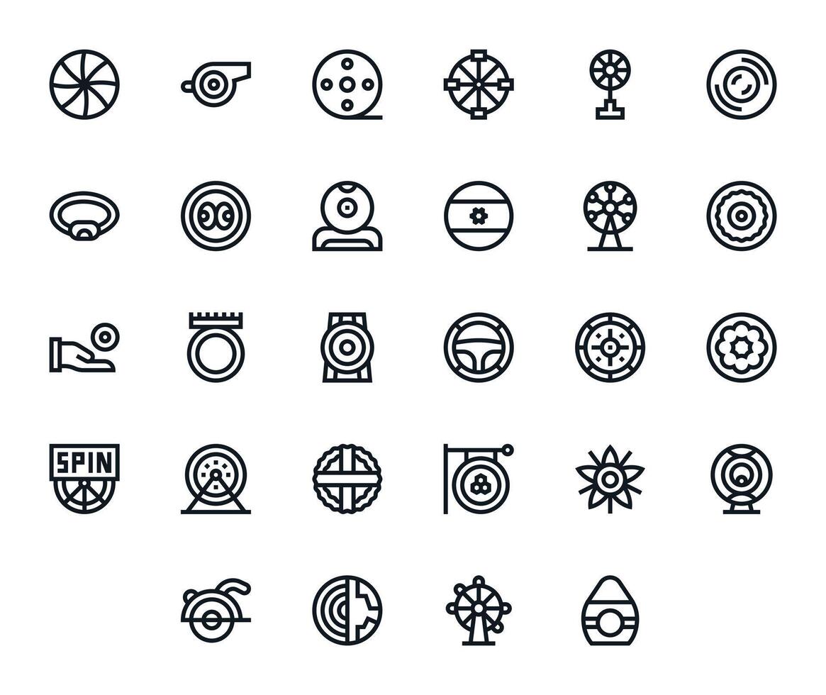 Circular Comprehensive Bundle with 28 Pixel Optimized Bold Line High Resolution Icons vector