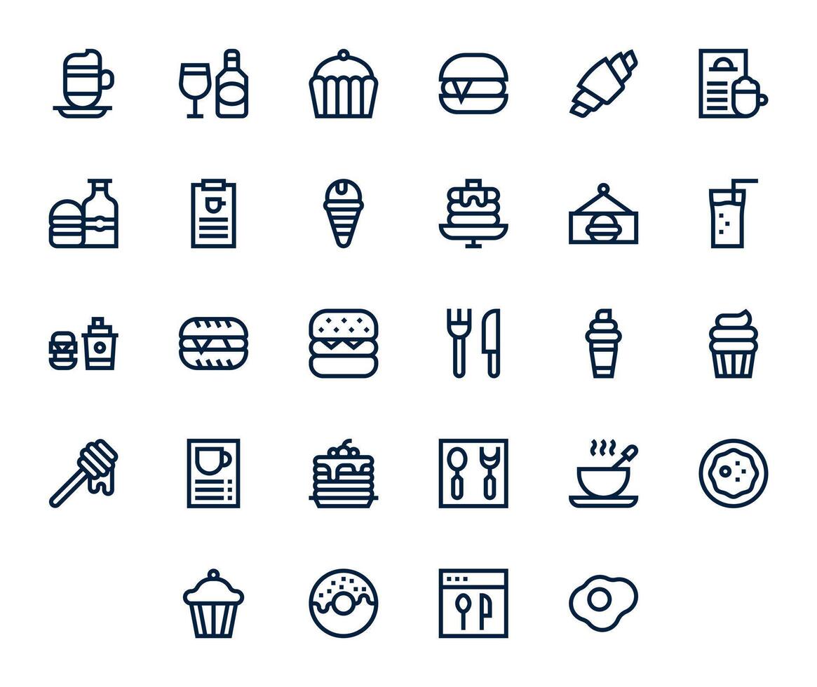 28 Icons for Cafe Menu featuring 256x256 Grid Fitted Bold Line Graphics Free Vector
