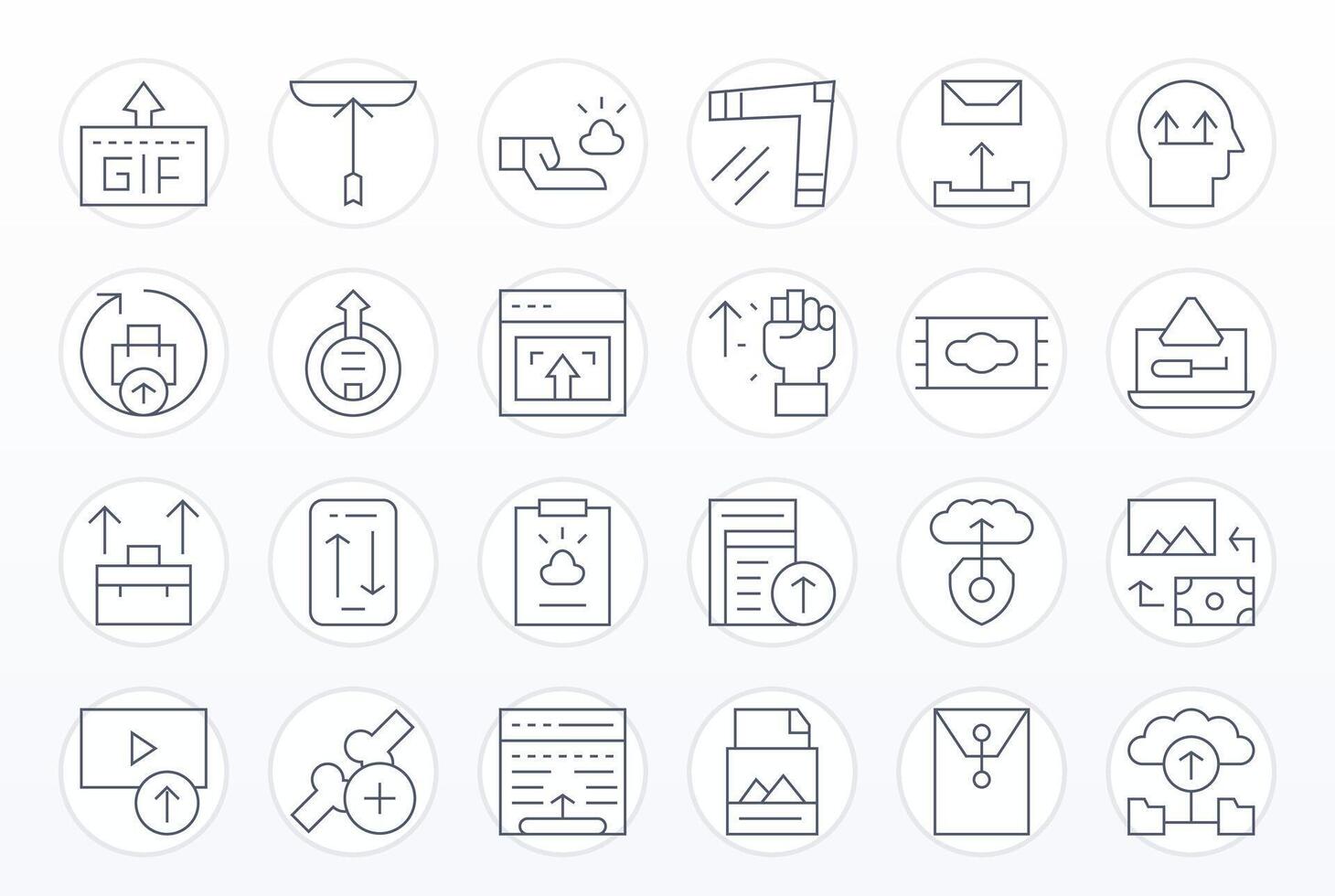 24 Pixel Aligned Thin Line Icons designed for File Upload Interface vector