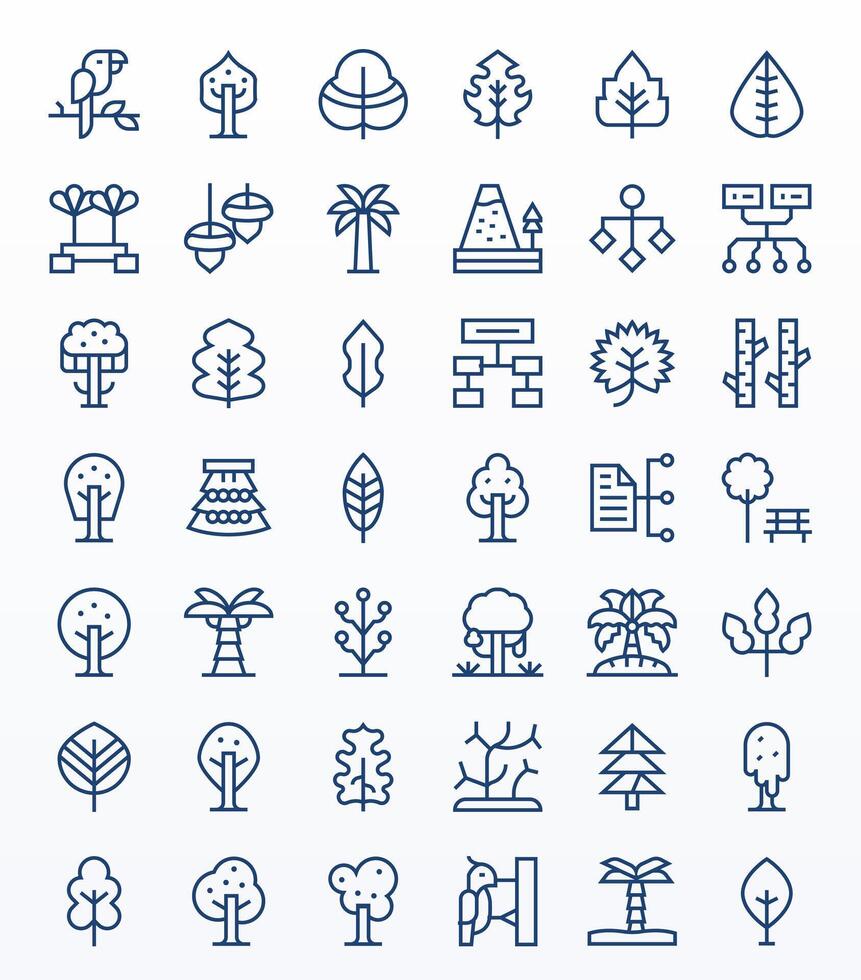 Tree Design Icons featuring 42 Pixel Aligned Regular Line Style Free Vector